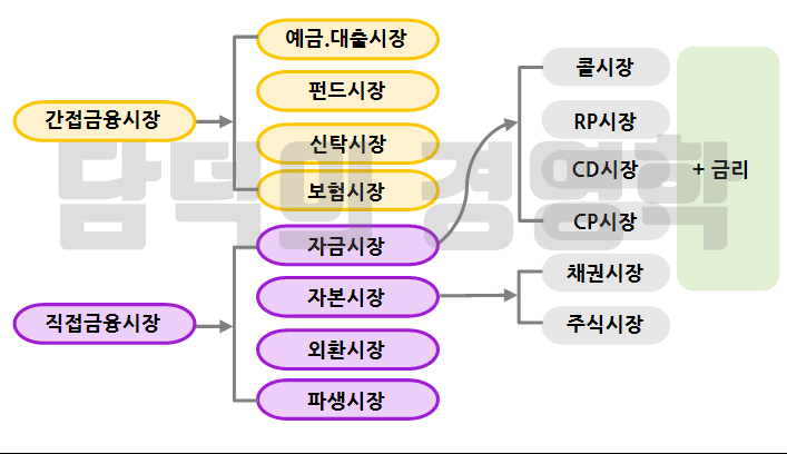| 직접 금융 시장 종류 | 자금시장, 자본시장, 외환시장, 파생금융상품시장 |