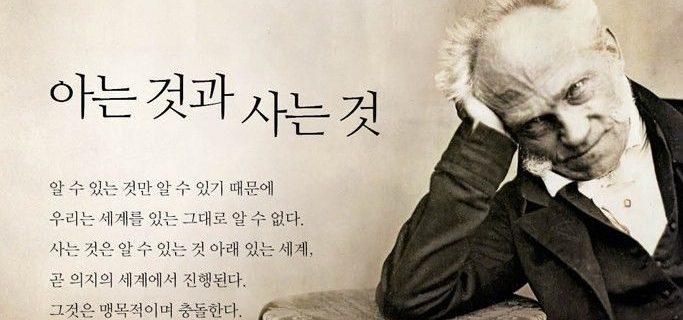 인식론: 칸트 초월적 관념론(세계는 현상계와 물자체. 인간의 인식은 현상) vs. 쇼펜하워 세계는 이원론. 의지(물자체, 맹목적이고 충동적인 힘)와 표상(현상계)