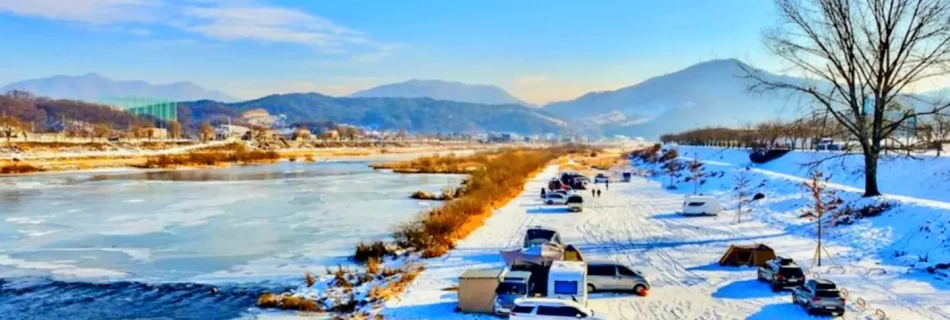 마곡유원지 얼음 위 캠핑